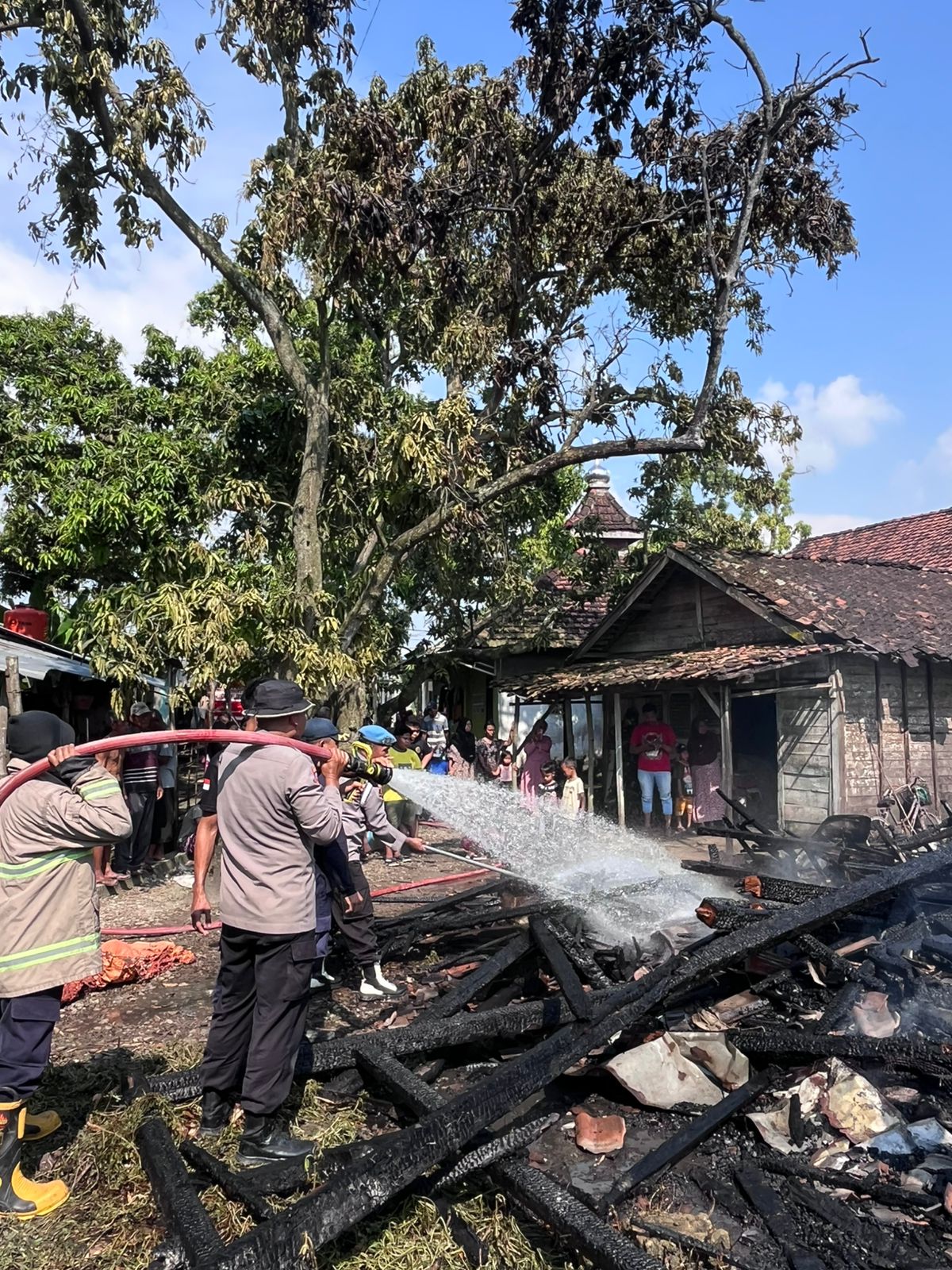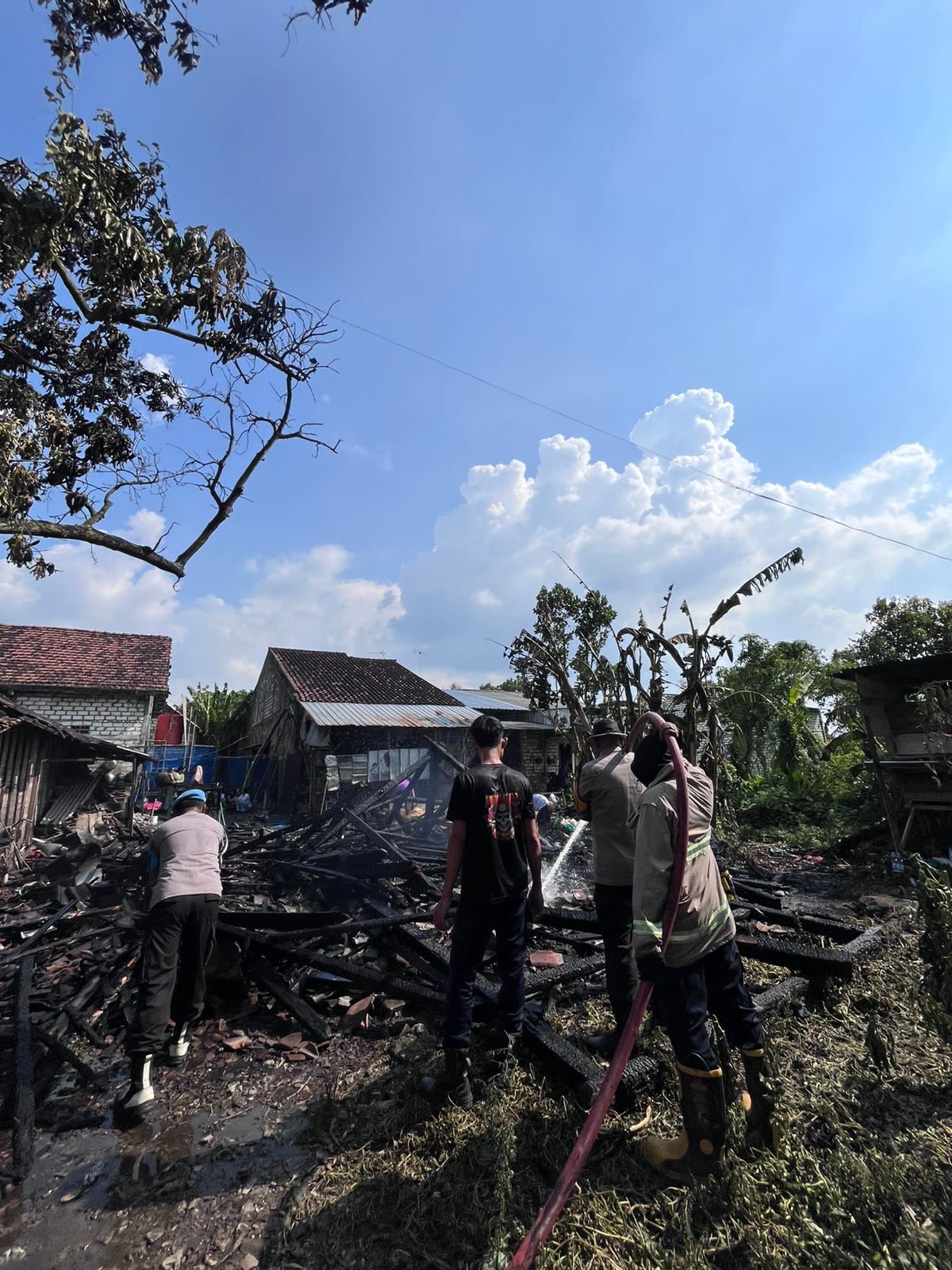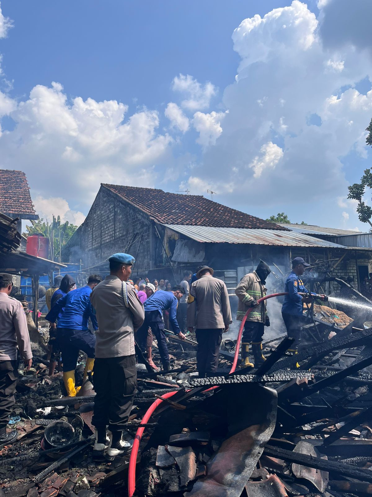 Usai api berhasil dikendalikan, Kapolsek Babat bersama anggota, petugas damkar, dan warga tidak hanya melakukan pembasahan di lokasi untuk mencegah munculnya titik api baru, tetapi juga membantu korban menyelamatkan barang-barang berharga yang masih bisa ditemukan.