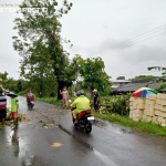 Polsek Sambeng Bersama Warga Tangani Pohon Tumbang di Jalan Raya Sambeng Desa Ardirejo