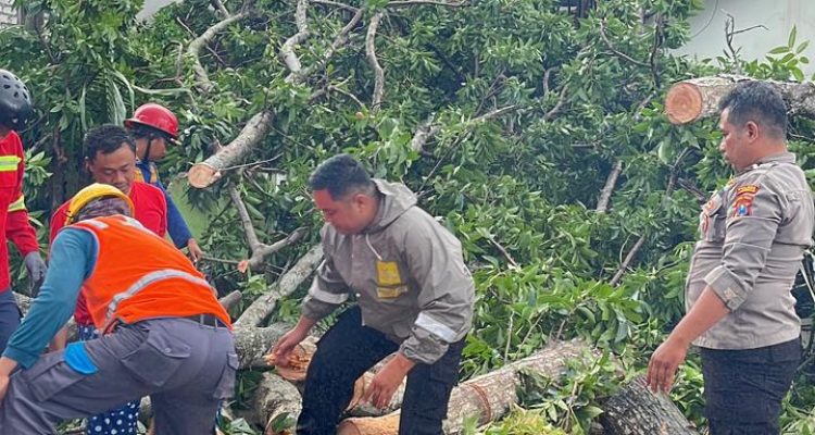 Polsek Paciran Sigap Evakuasi Pohon Tumbang di Jalan Raya Blimbing